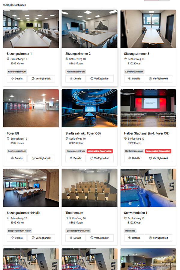Das Reservationssystem auf schluefweg.ch präsentiert sich in neuem Gewand. Neu stehen für die Suche zusätzliche Filter zur Verfügung, etwa nach Datum und Uhrzeit. Mit Ausnahme des Stadtsaals können alle aufgelisteten Anlagen direkt online reserviert werden.