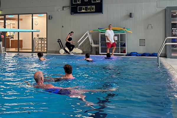 Ab Januar 2026 kommen neue Mittagskurse dazu: einen im Tiefwasser und einen – ganz neu – im Flachwasser. Bei dem im Flachwasser bzw. Brusttiefem Wasser liegt der Fokus auf Mobilität und Balance durch sanfte, fliessende Bewegungs- und Dehnelemente.